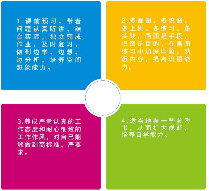 本课程是市政工程技术专业的一门技术基础课,实践性较强,其主要内容必须通过画图、识图才能掌握领会,为此学习中必须做到: