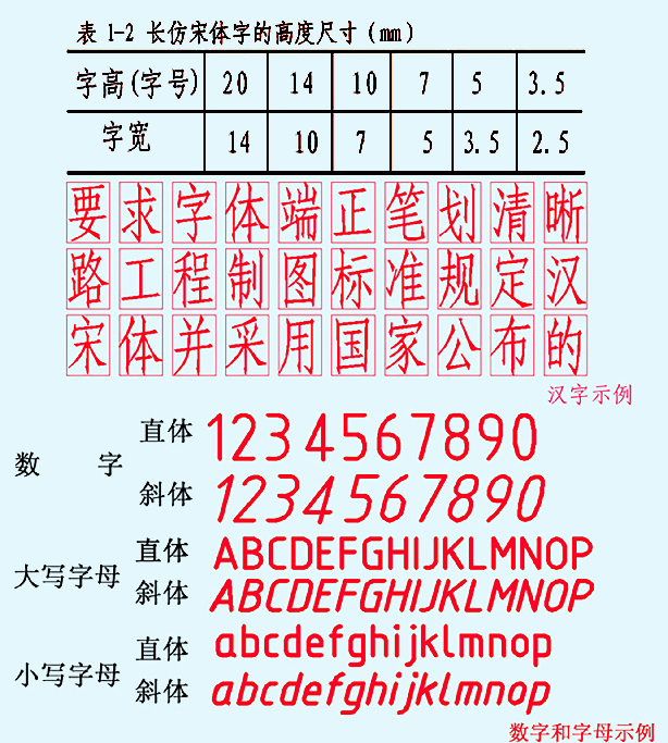 汉字、数字、字母等字体的书写均应符合《土木建筑制图标准》的规定。