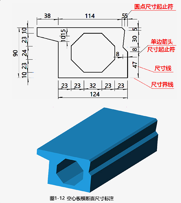1)尺寸界线:细实线,长度垂直,离开图样轮廓线≥2mm,一端宜超出尺寸线