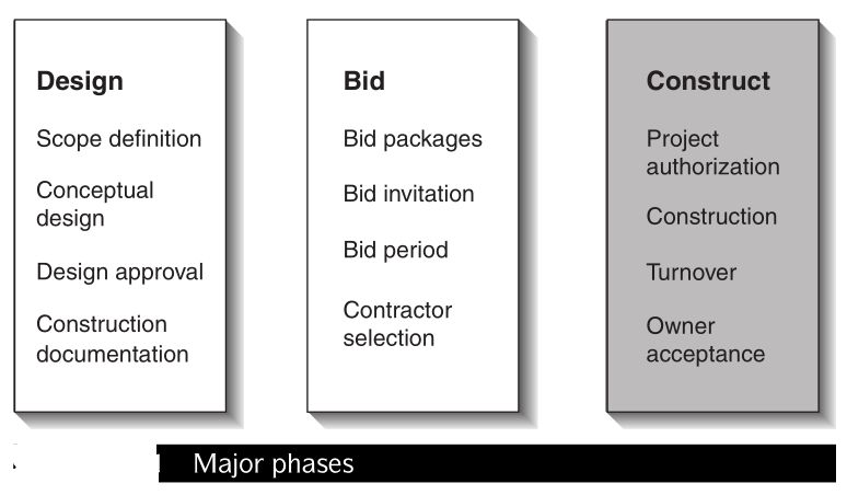 Once a project enters the construction phase, the builder's work is pretty the same no matter what contract form or delivery method was choosen. The same activities include: