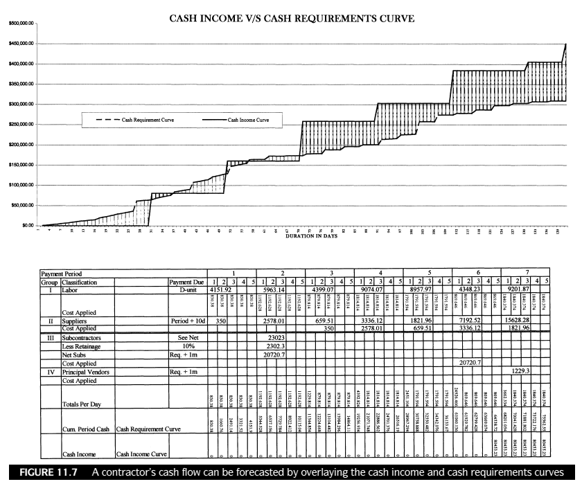 The cash requirements curve is the contractor's attempt to model as precisely as possible his or her cash needs for a project. When this curve is compared to the cash income curve, we can visualize the contractor's cash flow .
