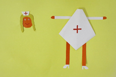 Step3 Glueand decorate the nurse’s uniform. Step4 Put each part of the nurse together.