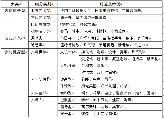 景区或当地居民表演展示、主客间互动的、游客自娱自乐的
