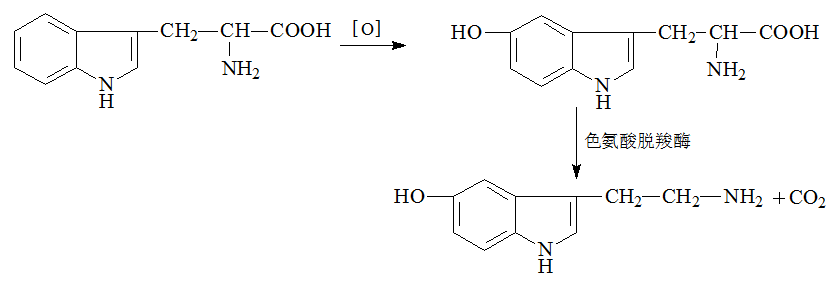 酶: 色氨酸羟化酶、5-羟色氨酸脱羧酶