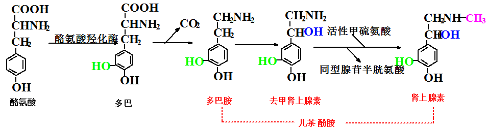 2.生成儿茶酚胺