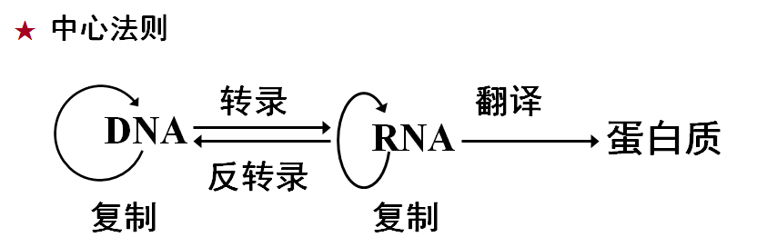 ★ 翻译(translation):mRNA分子中的核苷酸排列顺序转变为蛋白质分子中的氨基酸排列顺序的过程。