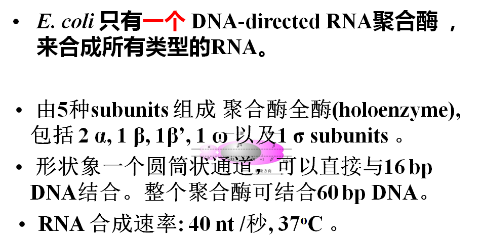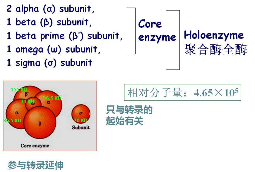 1.聚合酶中有两个相对分子质量超过1×105的大亚基;