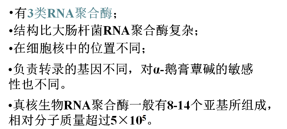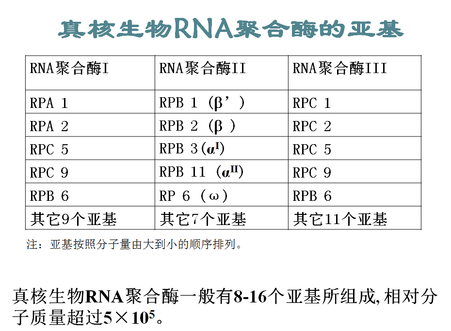 2.同种生物3类聚合酶有“共享”小亚基的倾向,即有几个小亚基是其中3类或2类聚合酶所共有的。
