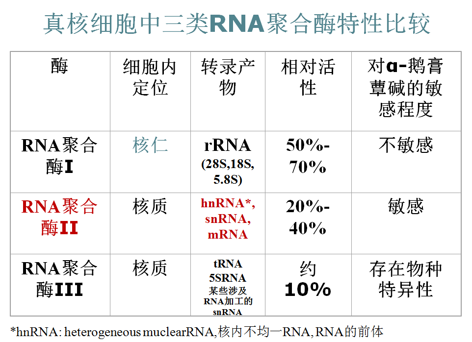 在动、植物及昆虫的细胞中,RNA pol Ⅱ的活性可被低浓度的α-鹅膏蕈碱所抑制。但却不抑制pol Ⅰ。