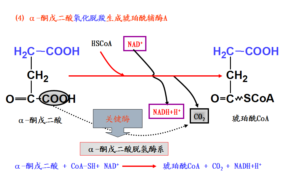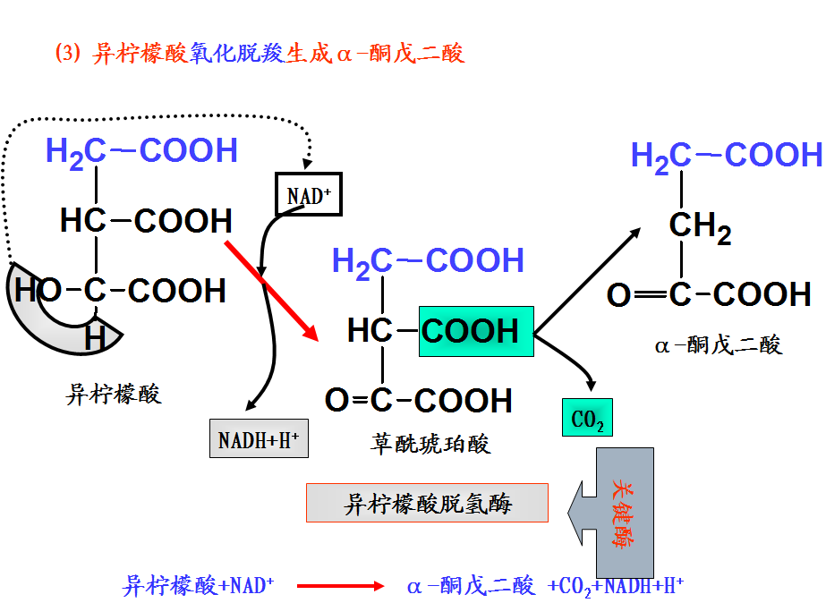② 三羧酸循环一周包括二次脱羧反应,分别是在α-酮戊二酸的两侧。