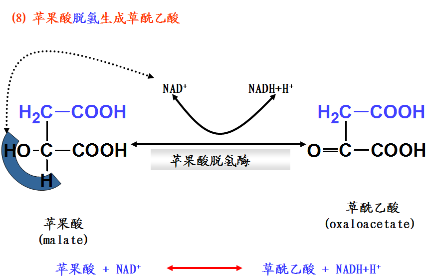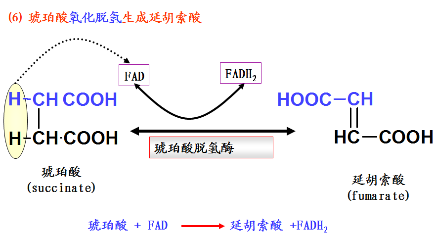④ 三羧酸循环包括四步脱氢反应,有三步以NDA+为辅助因子,有一步以FAD为辅助因子,生成的NADH+H+和FADH2分别进入呼吸链氧化成水并释放能量。