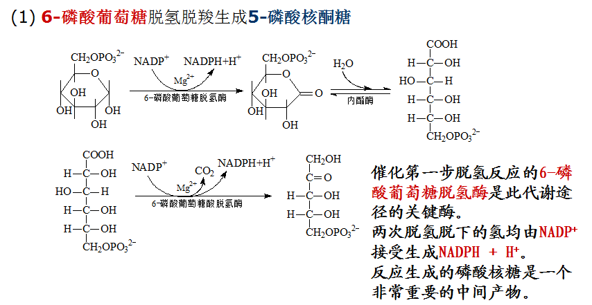 (1)磷酸戊糖途径中产生的5-磷酸-核糖是中成核酸的原料;
