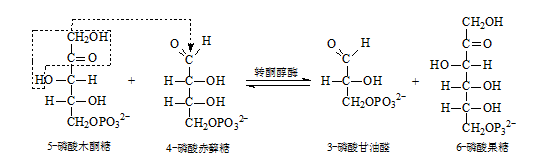 (5) 4-磷酸赤藓糖和5-磷酸木酮糖之间基团转移反应