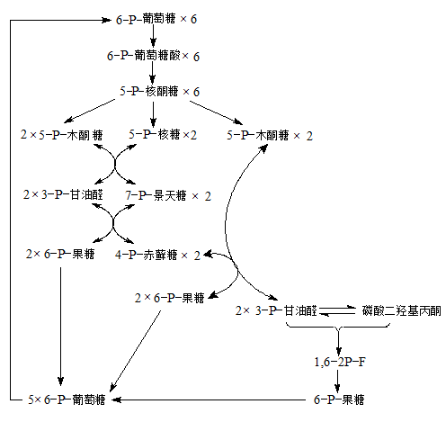 1.定义:由6-磷酸葡萄糖开始氧化脱羧生成磷酸戊糖经过戊糖分子的重排重新生成6-磷酸葡萄糖的过程。