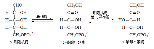 (2) 5-磷酸核酮糖 异构化生成5-磷酸核糖和5-磷酸木酮糖