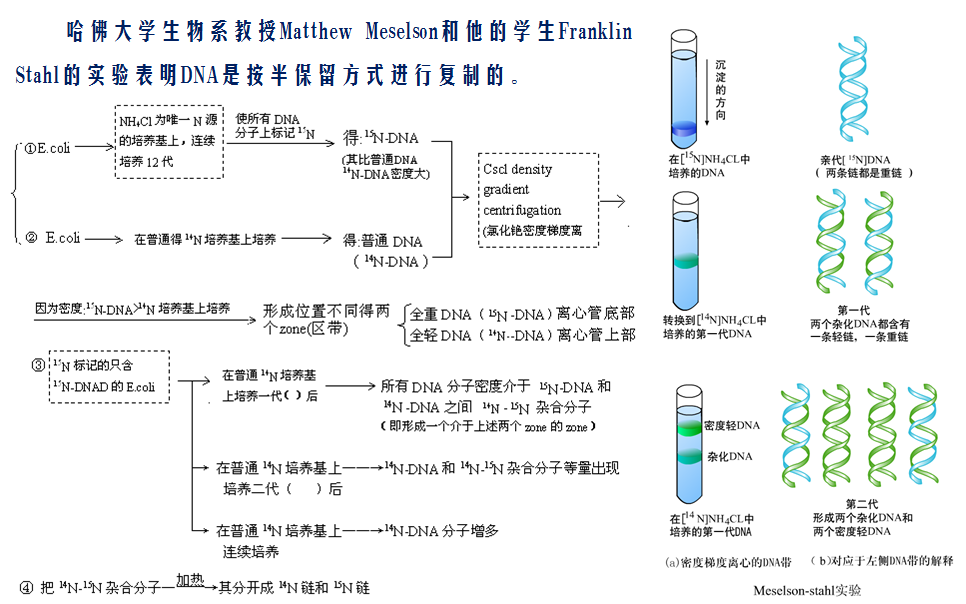 1958年Meselson-Stahl实验首次证实了DNA semiconservative replication(DNA半保留复制)