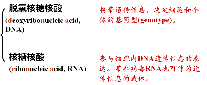以核苷酸为基本组成单位的生物大分子,携带和传递遗传信息。