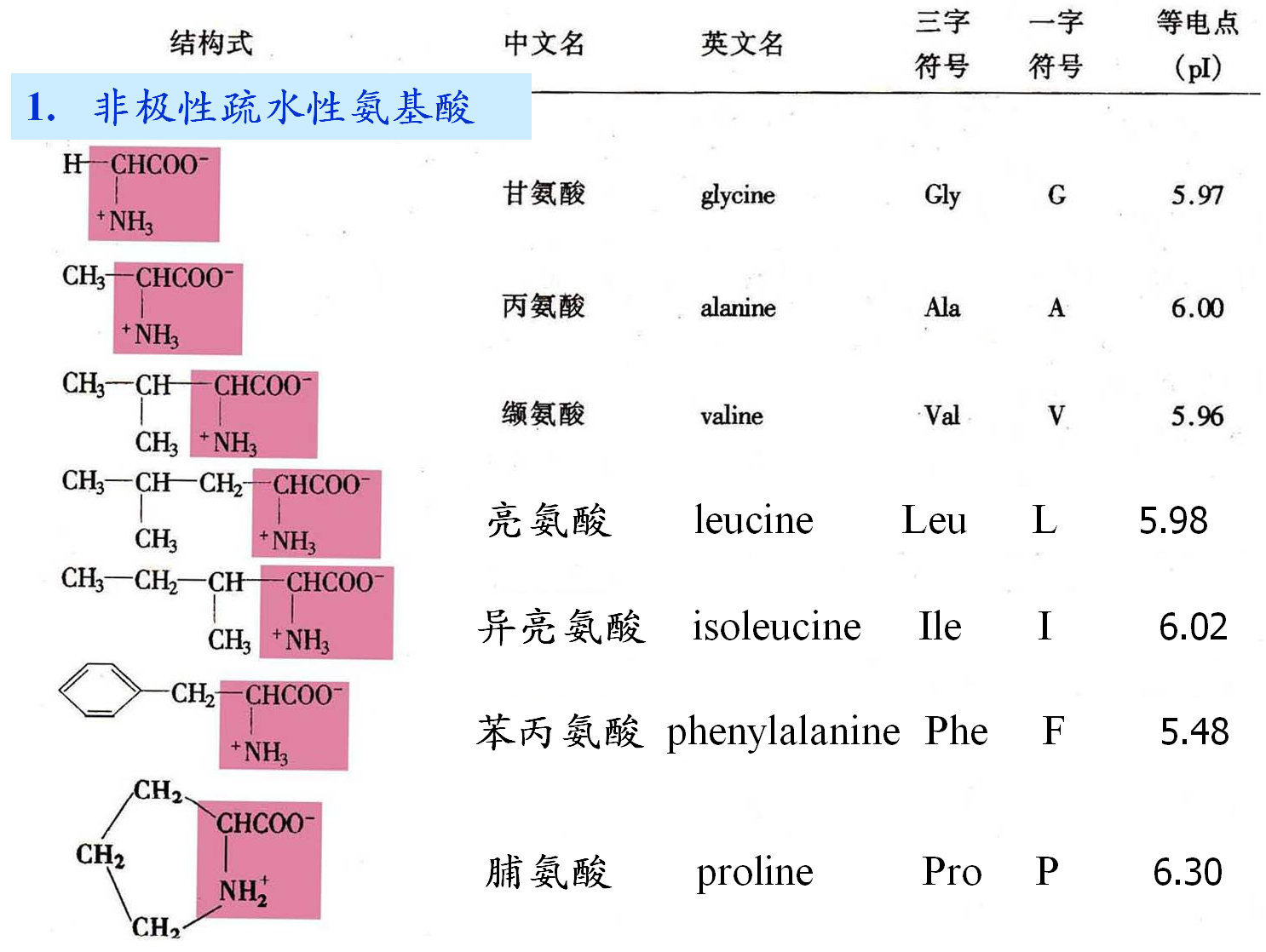 * 20种氨基酸的英文名称、缩写符号及分类如下: