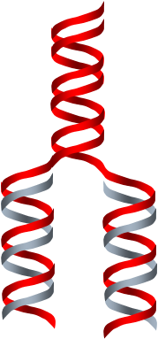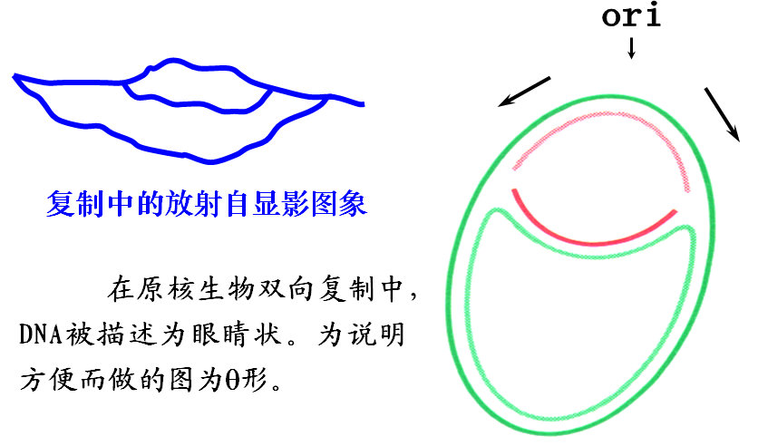 复制时,DNA从起始点(origin)向两个方向解链,形成两个延伸相反的复制叉,称为双向复制。
