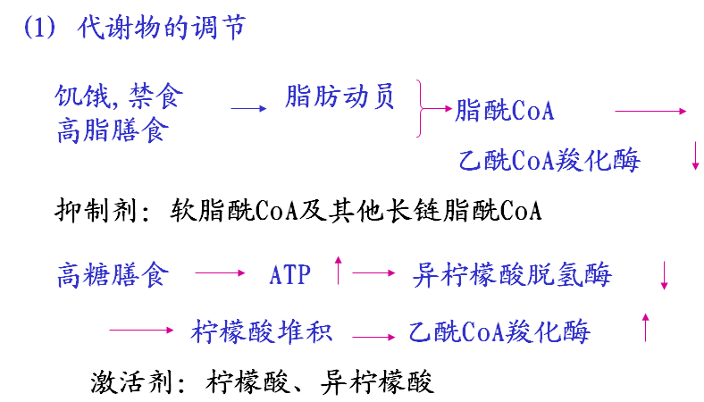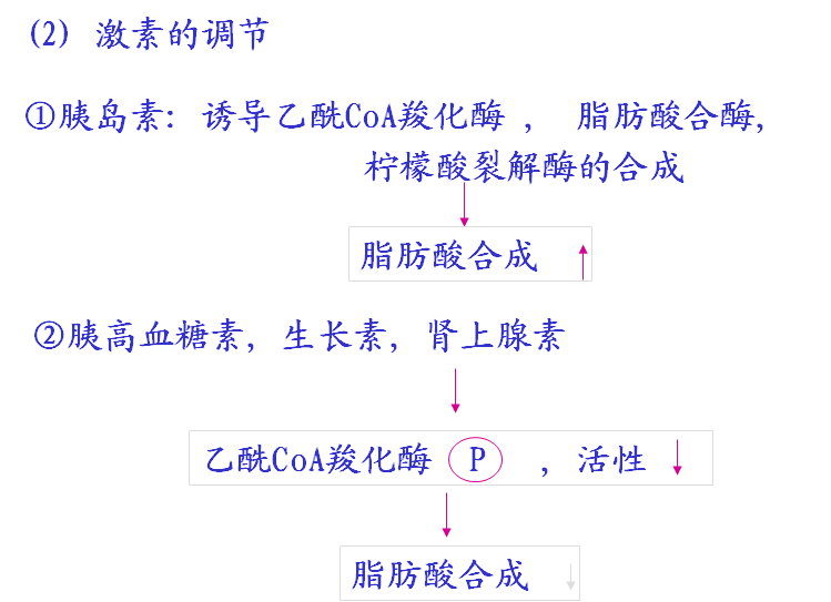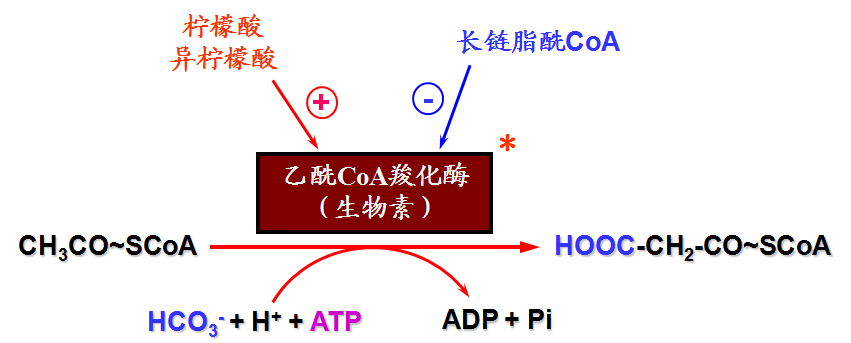 乙酰CoA羧化酶 (acetyl CoA carboxylase)是脂酸合成的限速酶,存在于胞液中,其辅基是生物素,Mn2+是其激活剂。