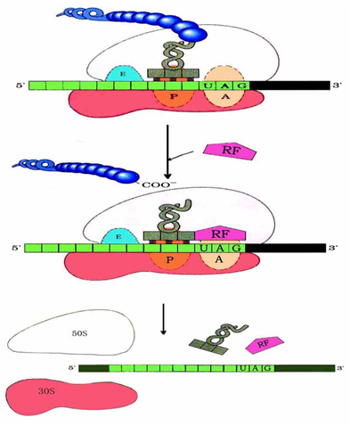 (3)移位:核糖体由5`→3`移动一个密码子距离