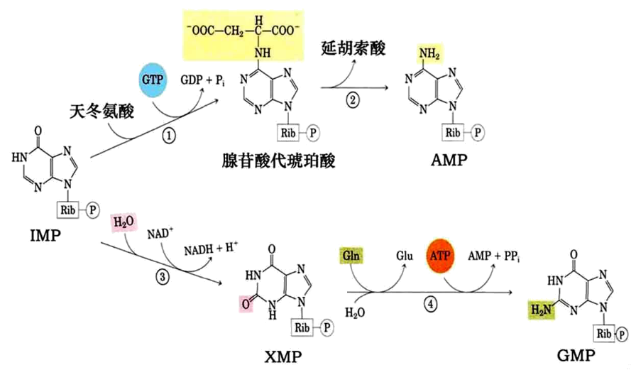 ①腺苷酸代琥珀酸合成酶 ③IMP脱氢酶