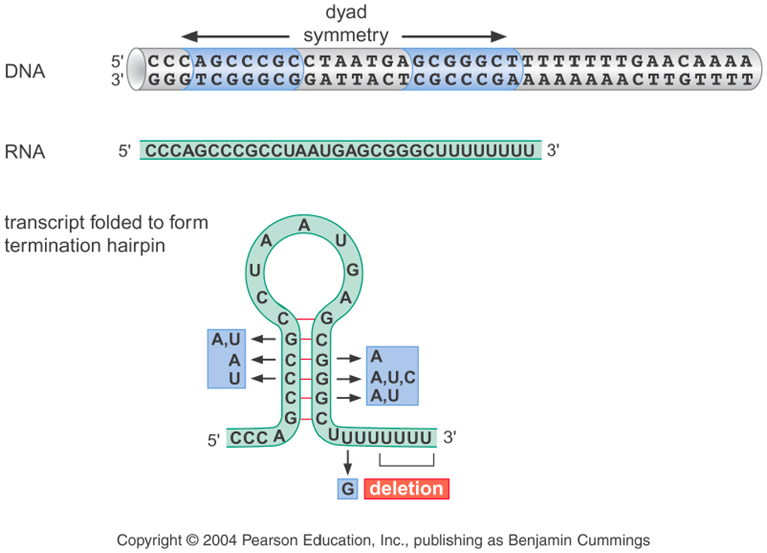 一段短的反向重复序列(大约20个核苷酸);其后是一段大约8个A:T碱基对的序列。