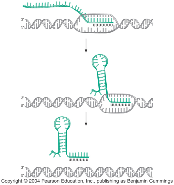 由它转录出mRNA可形成茎环结构,可阻止RNA pol的前进。