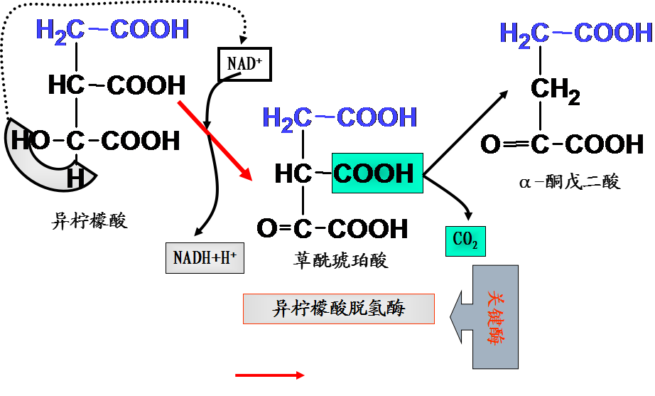 ⑶ 异柠檬酸氧化脱羧生成α-酮戊二酸
