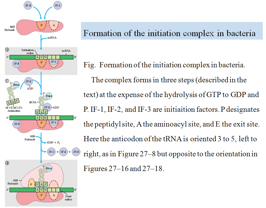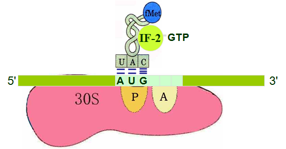 (3) 起始氨基酰tRNA( fMet-tRNAimet )结合到小亚基