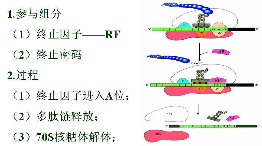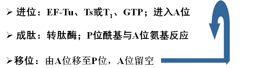 (3)移位:核糖体由5`→3`移动一个密码子距离