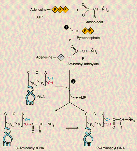 AA+tRNA+ATP→AAtRNA+AMP+PPi