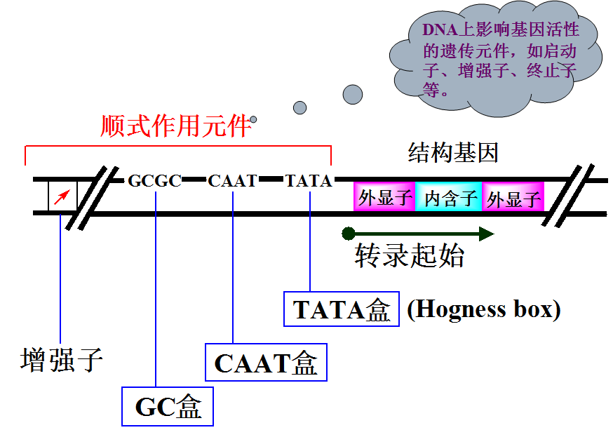 能直接或间接辨认和结合转录上游区段DNA的蛋白质,统称为反式作用因子(trans-acting factors)。
