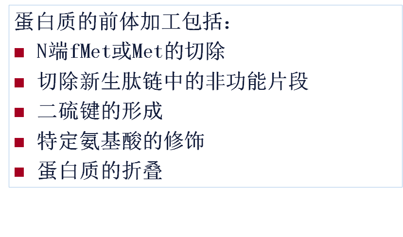 1、N端fMet或Met的切除无论原核生物还是真核生物,N端的甲硫氨酸往往在多肽链合成完毕前就被切除。