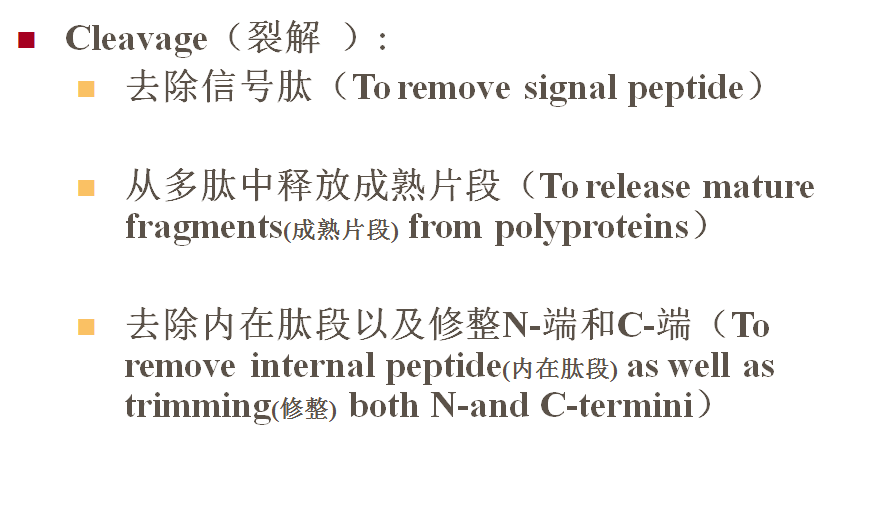 新生蛋白质经蛋白酶切割后变成有功能的成熟蛋白质