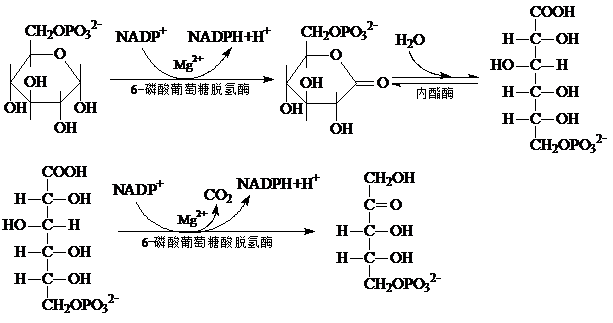 (1) 6-磷酸葡萄糖脱氢脱羧生成5-磷酸核酮糖