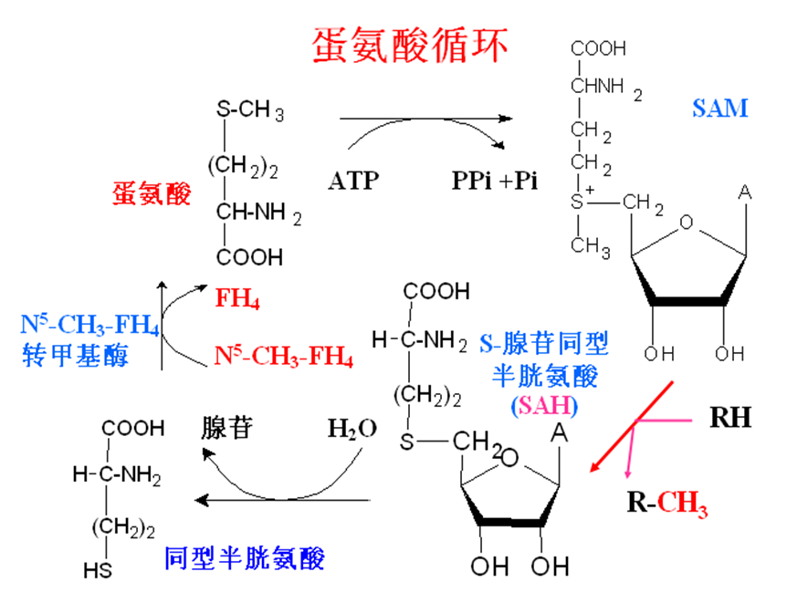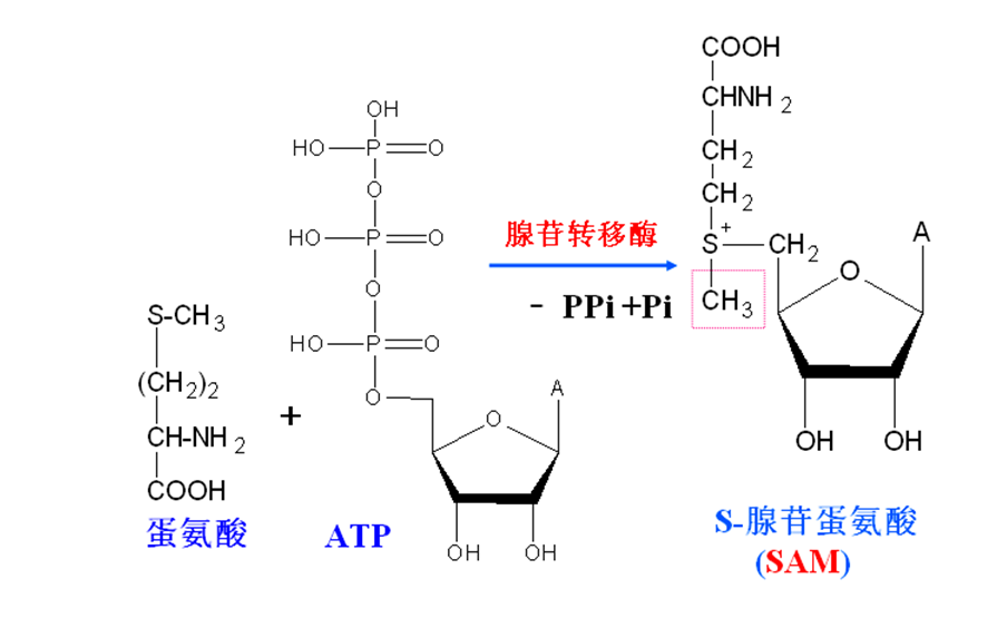 活性形式:S-腺苷甲硫氨酸(SAM)