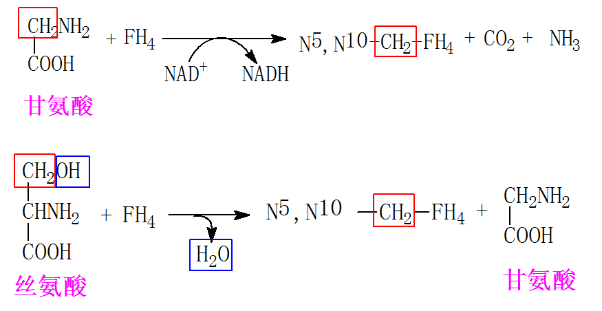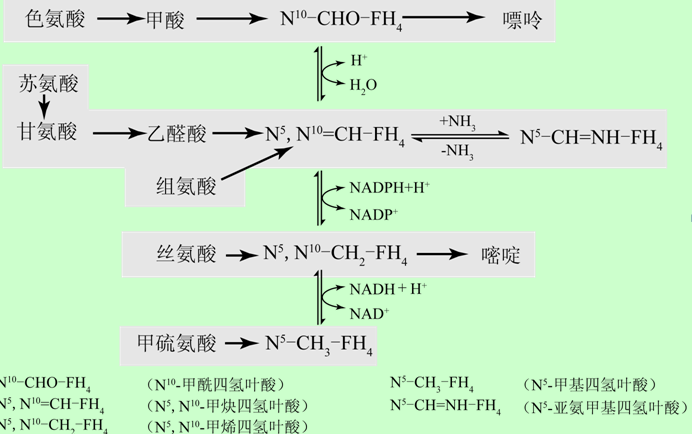 与四氢叶酸相连的各类一碳基团可以通过氧化还原过程相互转变