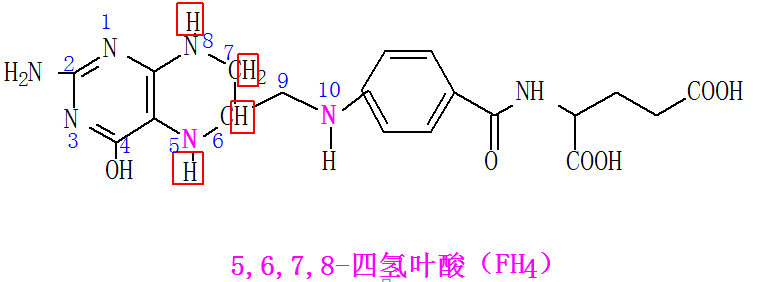FH4是一碳单位的运载体,携带甲基的部位是在N5,N10 位