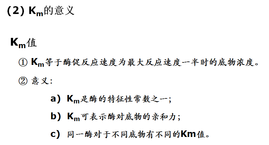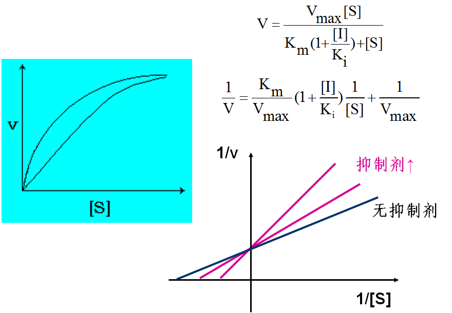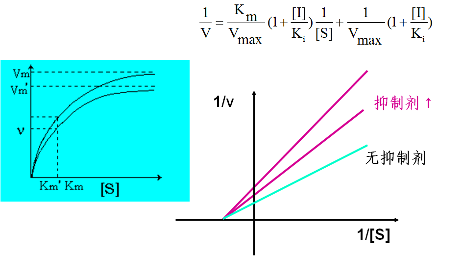 ⑷ 动力学参数:Km值增大,Vm值不变。