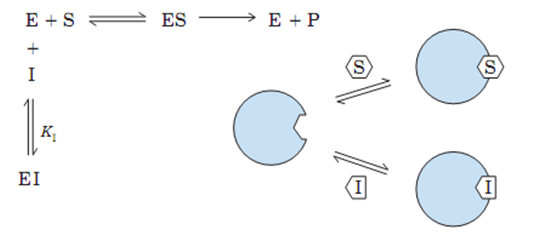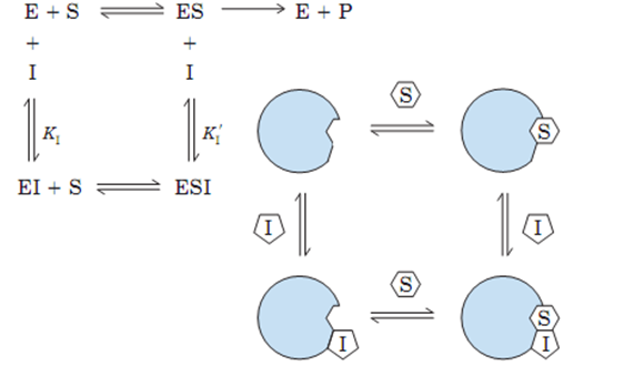 ⑵ 底物和抑制剂分别独立地与酶的不同部位相结合;