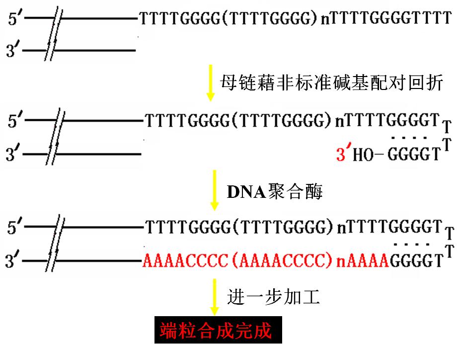 共同特点:富含G,C碱基的短序列多次重复,人和仓鼠端粒DNA都有(TTAGGC)n.