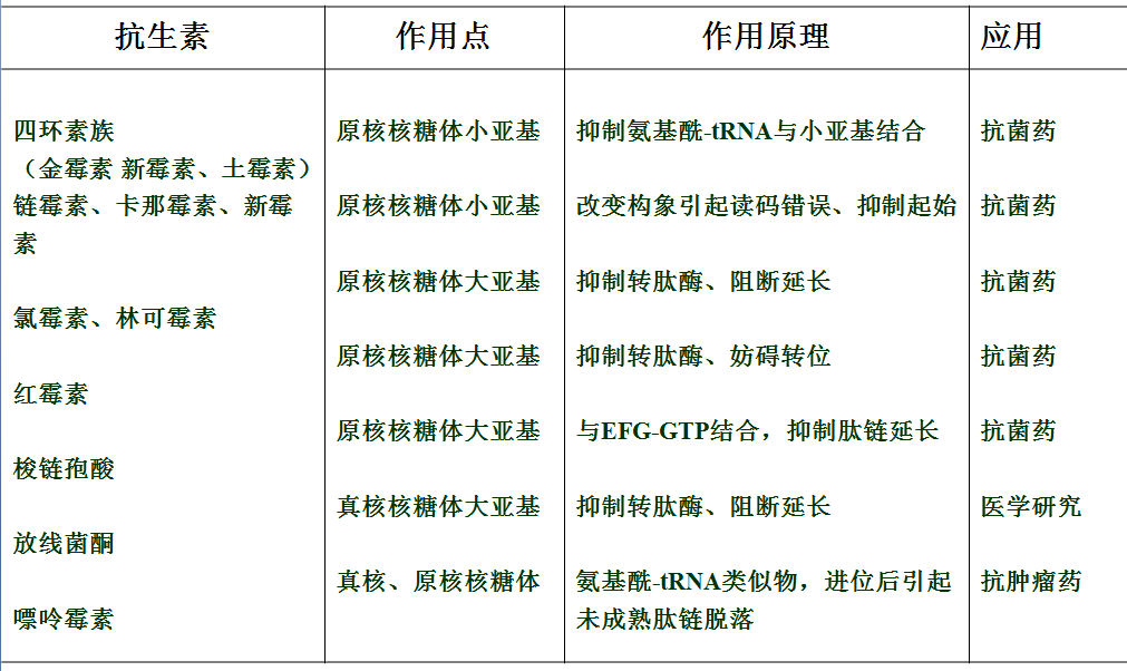 一、抗生素类——抗生素抑制蛋白质生物合成的原理