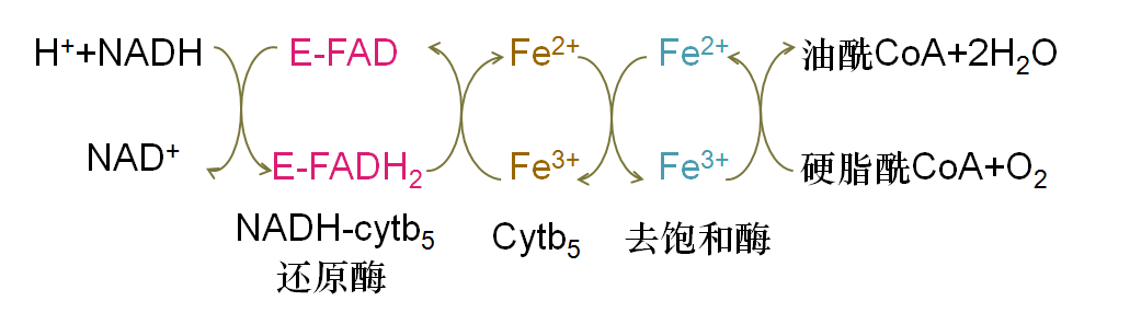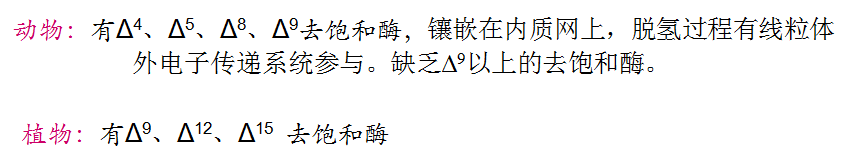 不饱和脂酸的合成是由相应的饱和脂肪酸经去饱和作用形成。