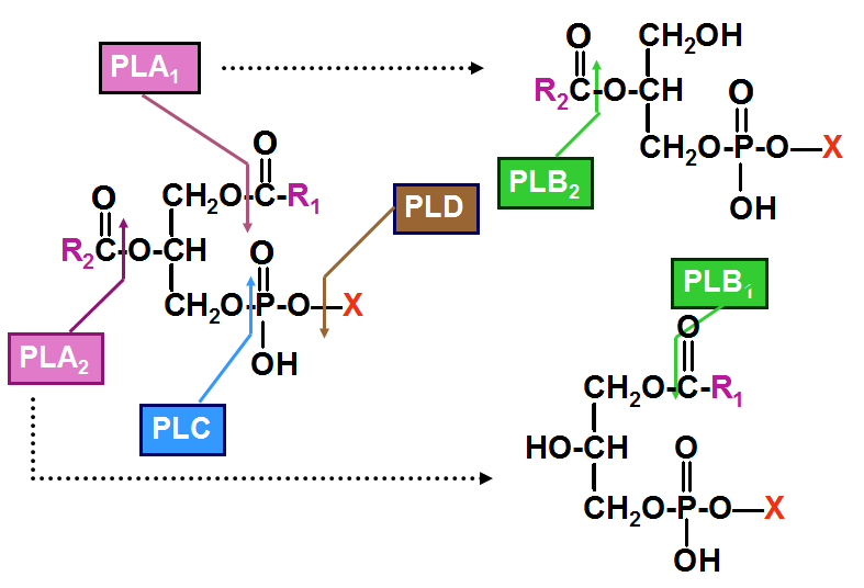 (二)甘油磷脂的降解 磷脂酶 (phospholipase , PLA)