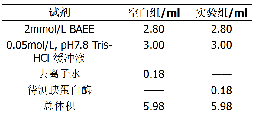 BAEE为底物,每分钟使ΔA253nm增加0.001所