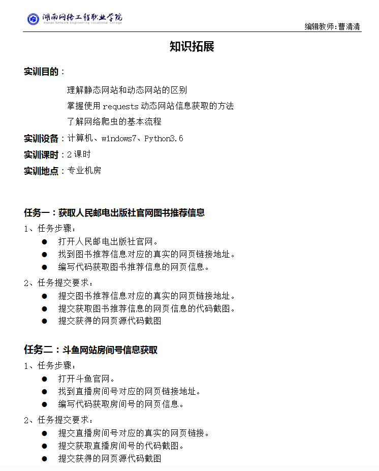 通过本视频的学习,掌握requests库爬取动态网页的方法。具体的知识如下: