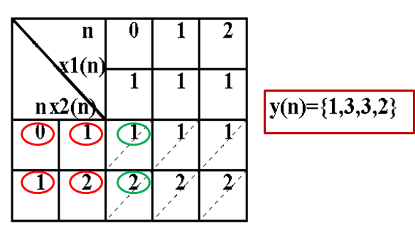 x1(n)={1,1,1},x2(n)={1, 2, 3}