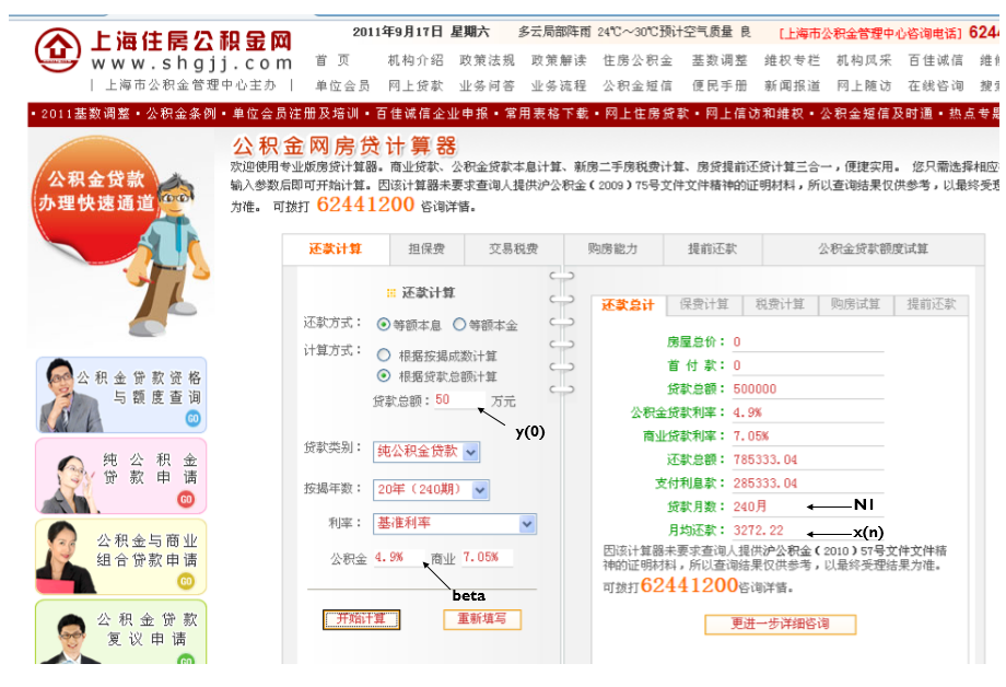 设采用公积金贷款50万元,利率beta=4.9%,