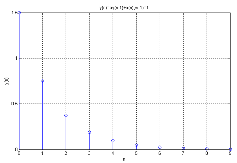 n=0时,y(0)= ay(-1)+δ(0)=1